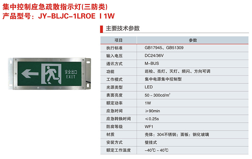 JY-BLJC-1LROE I 1W-Ex系列集电集控型消防应急标志灯具(防爆款)